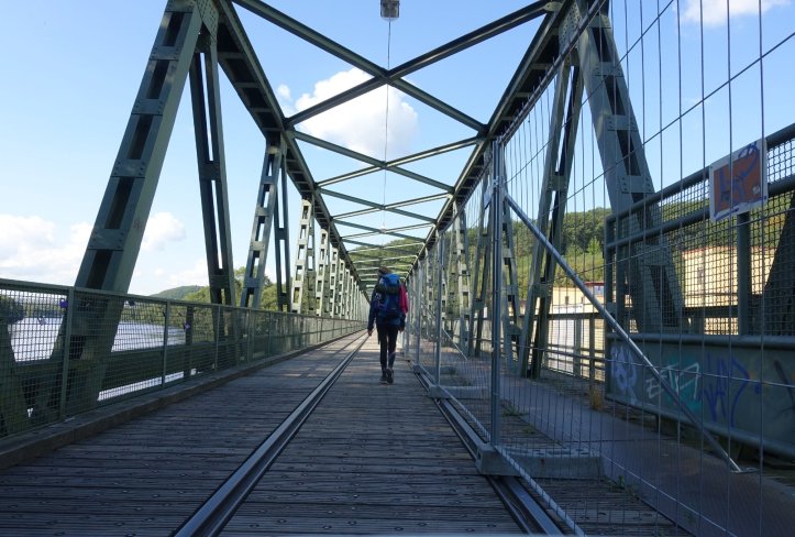 Über eine Fußgängerbrücke überquere ich den See und laufe in den Ort Herdecke. Die kleinen gepflegten Fachwerkhäuser sorgen für eine schöne Atmosphäre. Bei einem Bäcker gibt es einen zweiten Kaffee und passend zur Jahreszeit darf es ein Stück Pflaumenkuchen sein. Im Supermarkt fix Proviant eingekauft und wieder über eine Brücke diesmal direkt in den Wald hinein. Auf einem schmalen Pfad geht es steil bergauf und mündet in eine lange Treppe. Das Waldstück ist wunderschön und zieht sich immer weiter. Allerdings ist die Wegesmarkierung nicht immer ganz eindeutig und so laufe ich mindestens drei Mal in die falsche Richtung. Das ist heute wirklich sehr ermüdend, da es stets auf und ab geht. Am frühen Nachmittag merke ich wie schlecht ich in der Zeit liege und gebe mehr Gas.