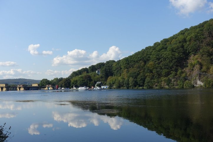 Der Morgen zeigt sich von seiner besten Seite und die Sonne strahlt fröhlich vor sich hin. Am Hengsteysee entlang bewundere ich das glitzender Wasser. Der Gewässer ist sehr lang gezogen und ich laufe dieses einmal der Länge nach ab. Viele Fahrradfahrer und Spaziergänger sind an diesem schönen Morgen unterwegs.