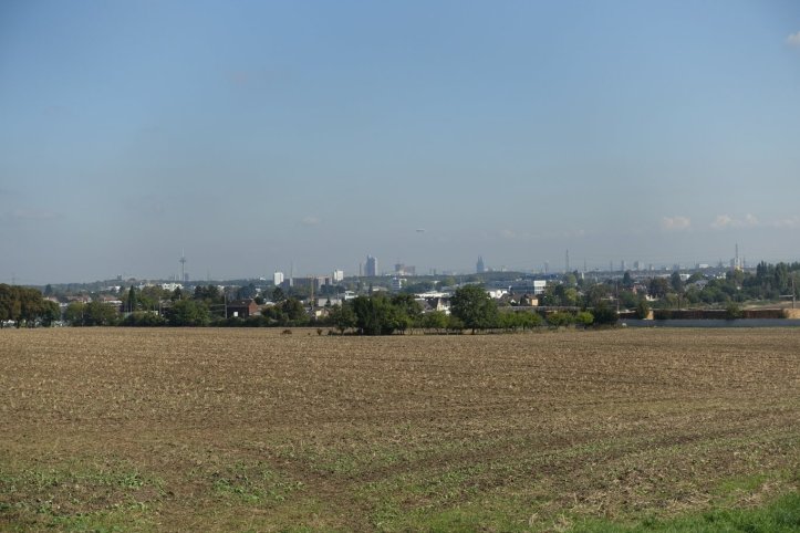 Zu meiner linken Seite sehe ich die winzige Skyline von Köln, passend fliegt gerade ein Zeppelin über das Zentrum.