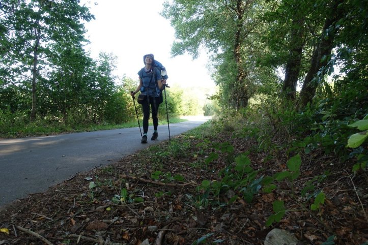 Ich will gerade weiter wandern da zwickt ein Zeh. An einer Mauer halte ich kurz und sehe eine kleine Blase. Im selben Moment laufen zwei Frauen vorbei: „Das sieht aber gar nicht gut aus. Brauchen Sie Blasenpflaster?“ Die beiden halten mich wohl für einen Amateur und ich beruhige sie und versichere ihnen, dass ich kurzen Prozess damit mache und das Procedere gewohnt bin. Wir kommen über den Jakobsweg ins Gespräch und auch hier fällt wieder die Frage, ob ich mich nach den Abitur dazu entschieden habe, ein bisschen wandern zu gehen. Merke: ein Strohhut und Zopf machen einen 10 Jahre jünger. Wer braucht da schon Faltencreme?