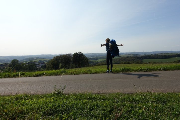 Nur die letzten Kilometer ziehen sich mal wieder. Steil bergab geht es in die Stadt Waxweiler. Einer der Wanderwege ist abgesperrt und ich muss den langen Weg auf der Hauptstraße laufen. Manche Autos rasen nur so an mir vorbei.