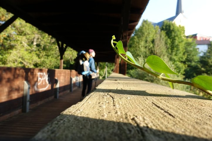 Das Spiel der letzten Tage fängt von vorne an. Bergauf und Bergab. Allerdings ist die Steigung heute deutlich mehr zu merken und macht sich in den Beinen bemerkbar. An einem Apfelbaum hole ich die zwei Wanderer ein und wir kommen nun doch ins Gespräch. Unser Tempo ist sehr ähnlich und nach den üblichen „Wo kommst du her? Was ist dein Ziel?“ Und ähnlicher Pilger Small Talk fangen wir sogar ein Gespräch über Politik, Europa und (wie sollte es anders sein) Corona an.Bis zum nächsten Ort sind wir tief darin versunken uns auszutauschen. Sie legen eine Pause ein und da ich gut dabei bin, gehe ich alleine weiter.