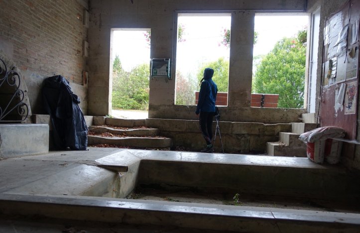 Laut brüllend und fluchend setze ich einen Schritt vor den anderen. Mein Poncho bebt unter den Böen, meine Hände und Füße werden abwechselnd taub und wärmen sich schmerzhaft wieder auf – naja, zumindest ein wenig. Die durchdringende Nässe lässt mich frieren und vor einem kleinen Ort finde ich in einer recht großen Hütte Unterschlupf. Den Rucksack und Poncho schnell abgesetzt, umkreise ich erstmal den ovalen überdachten Brunnen.