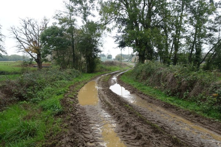 Am Morgen kann ich kaum die kleinen Augen öffnen und komme sehr schlecht aus dem Bett. Um 09:00 Uhr verlasse ich endlich die kleine Ein- Zimmer-Wohnung. In ordentlichem Schritt mache ich mich in der Kälte auf den Weg. Es ist frisch, aber ich fühle mich fit. Die Feldwege sind zum Teil äußerst matschig. Meine Schuhe weichen durch das Gras schnell durch.
