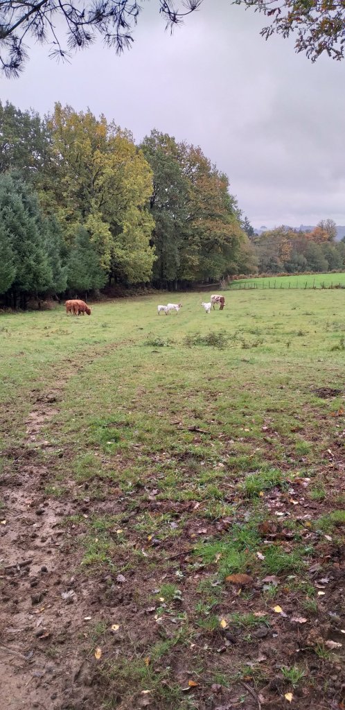 Kühe haben mir in den letzten Wochen viel Freude bereitet, allerdings jetzt über ihrer Wiese zu spazieren, bereitet mir ein Fremdgefühl. Vorallem da ausgerechnet diese Gattung sehr lange Hörner vorweist. Langsam setze ich einen Schritt vor den anderen. Zur linken Seiten ist ein kleiner Wald, in dem allerdings auch ein Artgenosse grast. Ich werde ignoriert und so setze ich weiter einen Fuß vor den anderen, ohne meinen Blick von den Tieren zu nehmen.