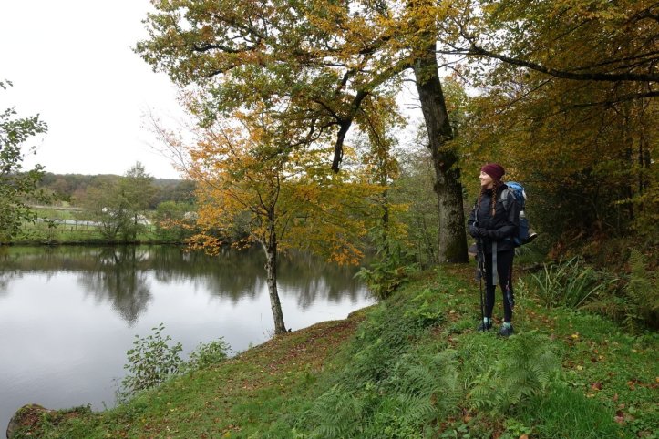 Die kleinen Abenteuer machen heute richtig Spaß. Der Pfad führt an einem kleinem See entlang und kurz darauf in die kleine Stadt La Coquille. Eine Picknickbank neben der Kirche bietet sich als perfekte Pausenmöglichkeit an.