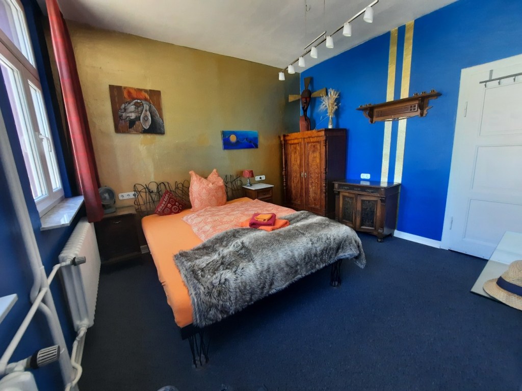 Johannes bietet in seinem Haus Farbenfroh Zimmer an. Ich werde herzlich in seinen bunt eingerichteten Vier-Wänden begrüßt. Er sammelt Kunstgegenstände und überall gibt es was zu entdecken. Ich fühle mich direkt wohl.