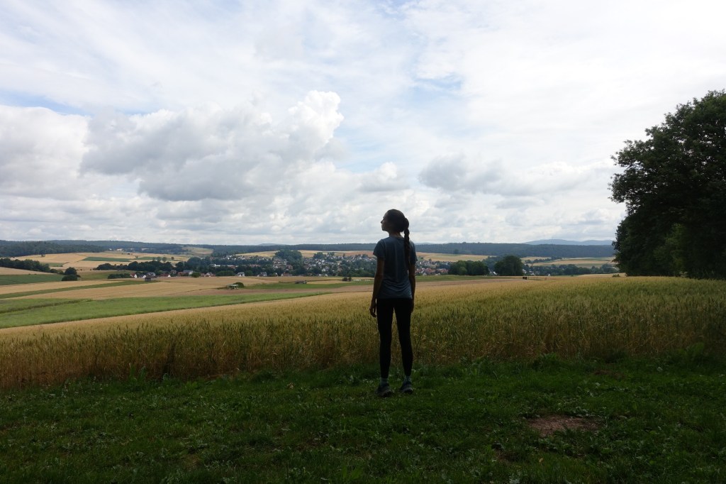 Gute 20 Kilometer führt der Weg durch den Wald ohne durch einen Ort zu verlaufen. Dadurch müssen meine Füße wenig Asphalt ertragen und fühlen sich die meiste Zeit gut an. Ein paar Pausenplätze haben wirklich tolle Aussichten.