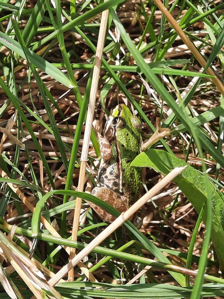 Nach 3,5 Stunden mache ich die erste Pause an einem kleinen Teich, wo ich einen kleinen Frosch entdecke.