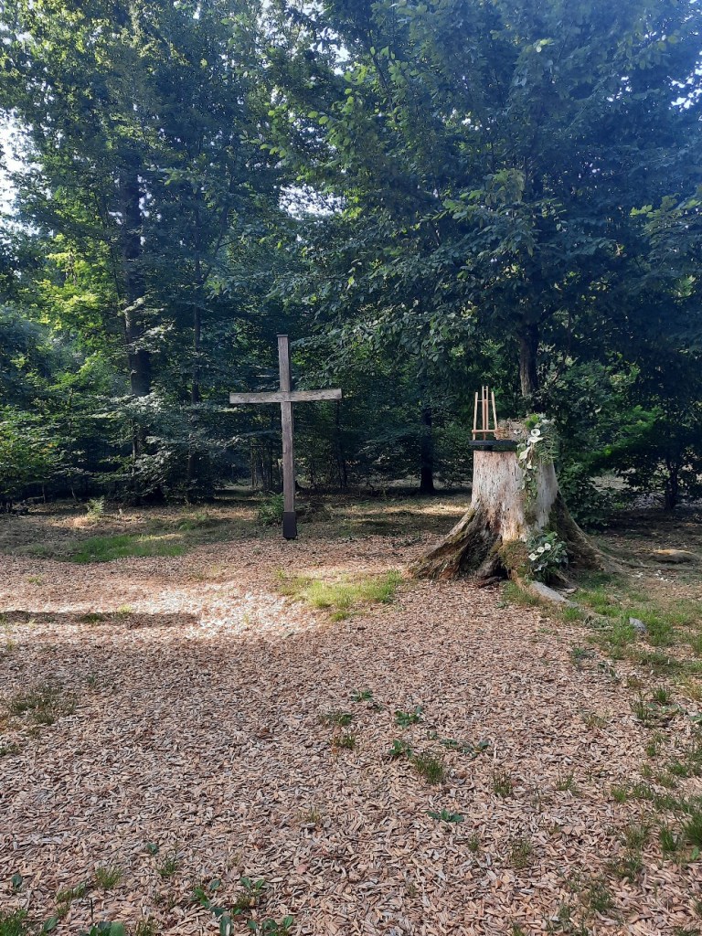 Die Route führt an einem Waldfriedhof vorbei und ich nehme einen Paralellweg, um mir diesen anzugucken. Nicht viel erinnert an die für mich typischen Friedhöfe. Hier und da sind sehr kleine Schilder mit Nägeln in den Bäumen versehen. Sonst weist nicht viel auf die Gräber hin. Anstatt langsam verwelkender Blumen, sieht man wachsende Bäume, die vor Leben nur so strotzen.
