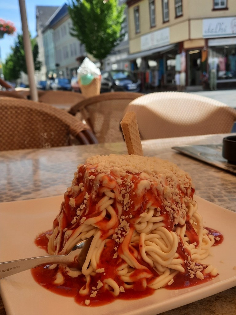 Ich bin mir nicht sicher, ob es die Hitze ist, oder das ich vielleicht nicht mehr ganz frisch rieche, aber die Bedienung wird schon ihren Grund für ihre unfreundliche Art haben… Das Eis schmeckt trotzdem.