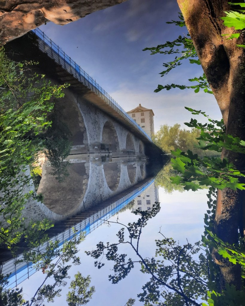 Durch die kleinen Gassen in Limburgs Altstadt führt der Weg zur Lahn. Der Fluss ist hier so ruhig, dass ich ein wunderschönes Bild mit Spiegelung der Brücke aufnehmen kann.