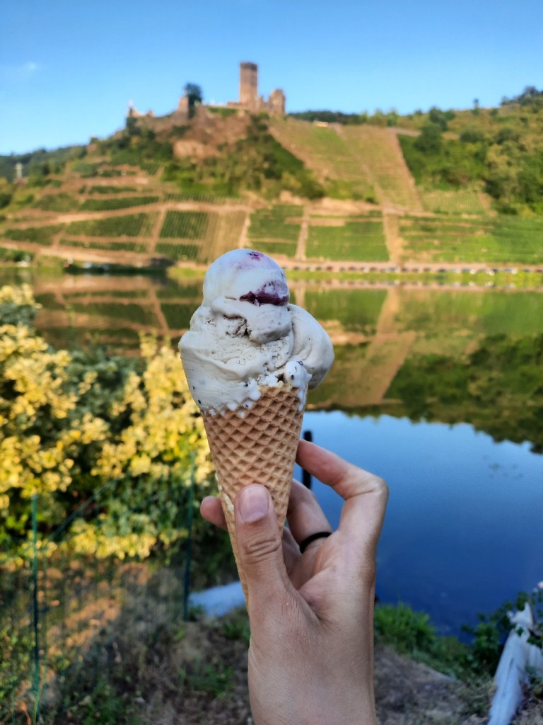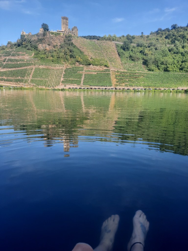 Kurz vor dem Ziel geht es natürlich wieder bergab und ich erreiche den kleinen, schönen Ort Beilenstein. Von dort nehme ich die Fähre, da der Campingplatz auf der anderen Seite der Mosel ist.