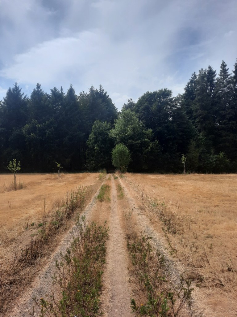 Über Feldwege geht es weiter. Die Sonne ist jetzt am Morgen schon sehr heiß.