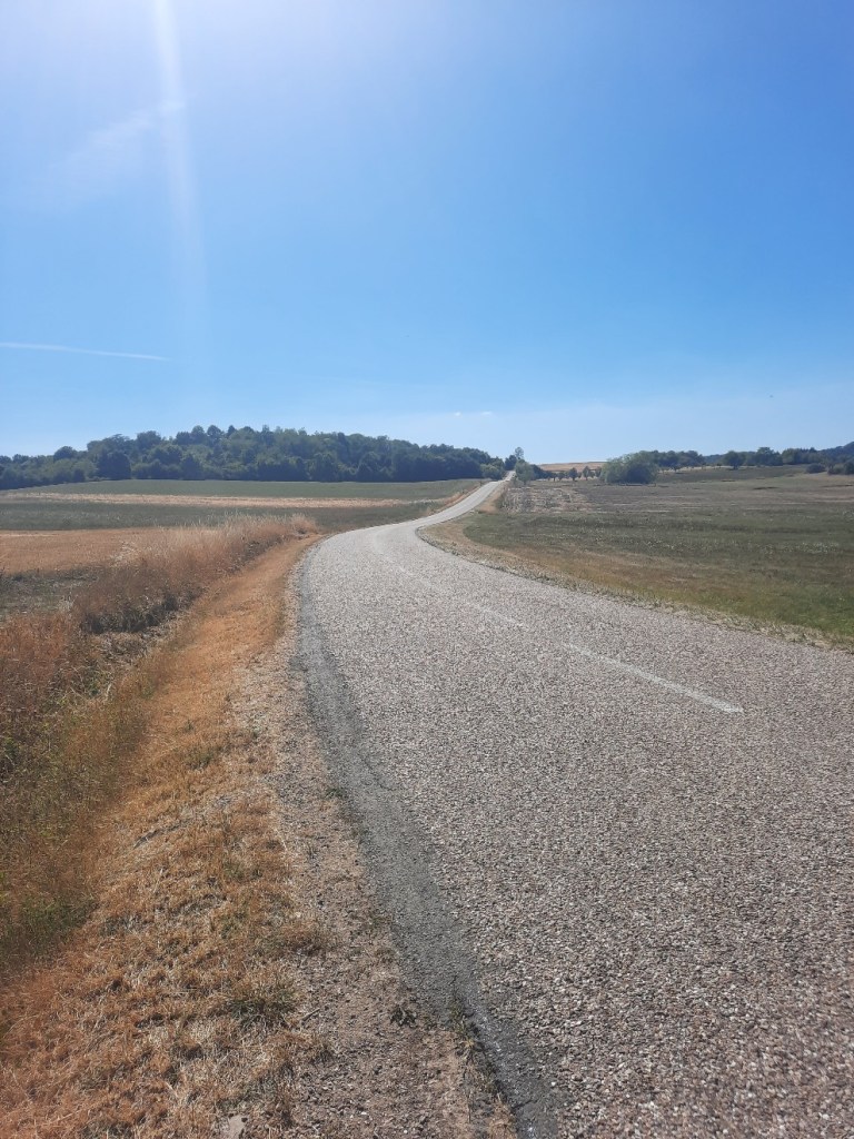Kurz vor Montenach ist es in der prallen Sonne kaum auszuhalten. Der wolkenlose Himmel und die 34°C geben ihr bestes um mich zusätzlich zum Schwitzen zu bringen.