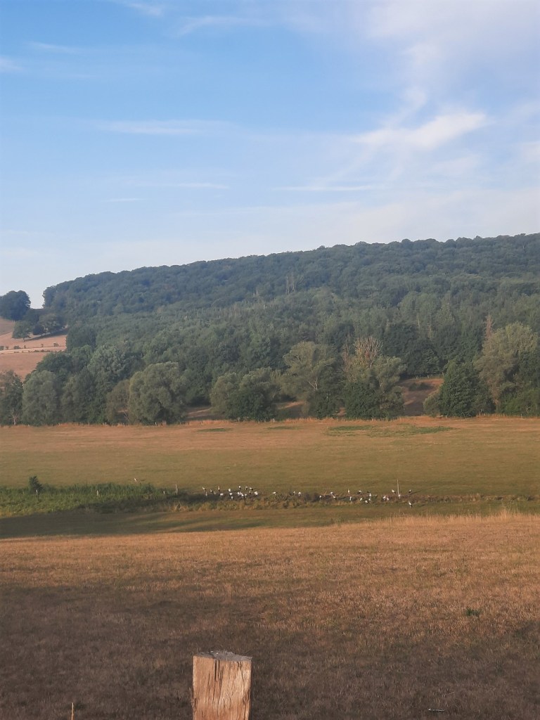 Weiter an der Straße über Saint Hubert bis nach Vigy läuft es sich ganz gut. Der Asphalt ist wirklich nervig, aber die Steigungen sind heute wirklich minimal. Meine Stimmung ist ganz gut und in Vigy hole ich mir das erste Pain au Chocolat, dass ich auf einer Bank genüsslich verspeise.