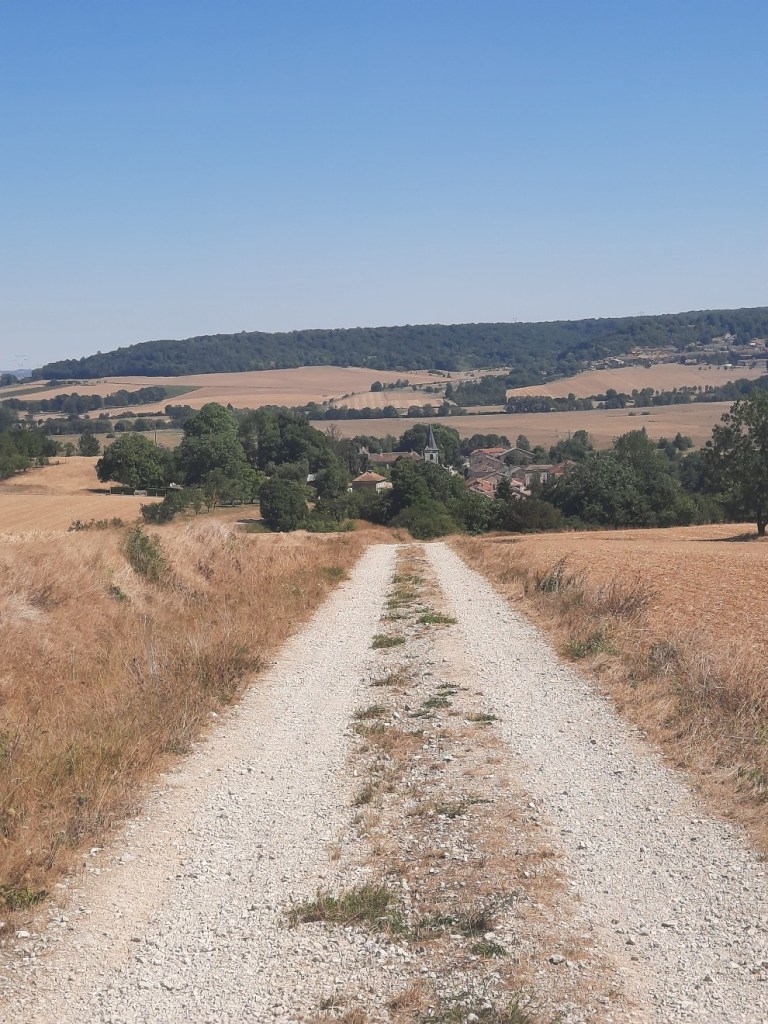 Der kleine Ort Sepvigny ist schnell durchquert und weiter geht es auf dem gut zu laufendem Feldweg. Der Boden ist trocken, das Gras verwelkt und es gibt kaum große Steine.