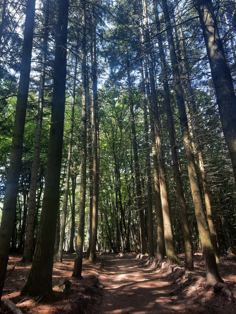 Die Sonne zeigt sich heute wieder und wir sind froh im Schatten der Nadelwälder unterwegs zu sein.