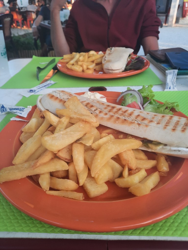 Nach 34 Kilometern erreichen wir Charlieu gegen 18:30 Uhr. Nach einer Dusche gibt es in der Snackbar Abendessen. Ein vegetarisches Panini und Pommes schmecken köstlich, ein Eis darf es als Dessert sein.