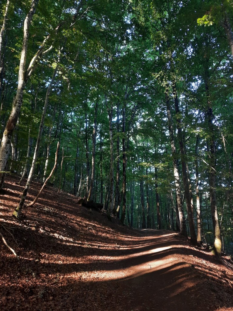 Die Nacht war zwar frisch, aber gut auszuhalten. Um 7:30 Uhr sind die meisten der Zelte schon abgebaut und die Wanderer losgelaufen. Für mich geht es erst um 9:30 Uhr los. Ich fühle mich müde und folge der Route erst unmotiviert. Die ersten Kilometer geht es bergauf und ich bestaune den tollen Birkenwald im Morgenlicht.