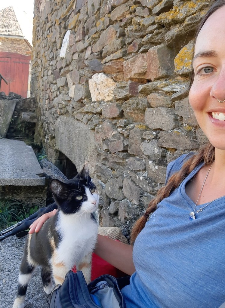 In Saint-Come-d’Olt mache ich eine Pause, es sind mittlerweile 32°C und ich bin total müde. Innerhalb weniger Tage ist es wieder heiß geworden und dies schafft mich sehr.