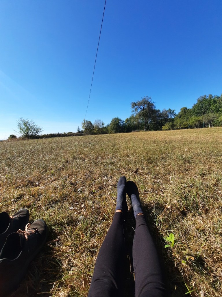 Nach 33 Kilometern bin ich sehr froh in Cajarc anzukommen. Den Campingplatz betrete ich um 17:45 Uhr. Mein Zelt ist noch nass und nach dem Aufbau lasse ich es erstmal trocknen und mache mich auf zum Supermarkt. An einer Bar treffe ich auf Rudi und Collin, letzterem bin ich vor ein paar Tagen in Golinhac ganz kurz begegnet. Ich halte einen kurzen Plausch mit den beiden und ziehe weiter.