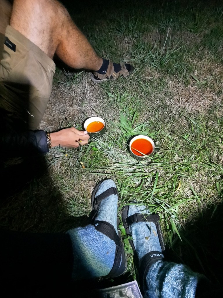 Im Supermarkt holen wir unser Abendessen und bereiten dies in der Küche zu. Vor dem Schlafen gibt es noch Tee, während wir im Rasen sitzen und den Neumond und die Sterne beobachten.