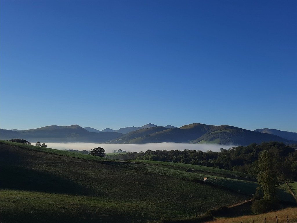 Um 8:50 Uhr starten wir in diesen schönen Tag. Der Nebel hängt zum Teil in den Tälern und die Landschaft sieht aus wie gemalt.